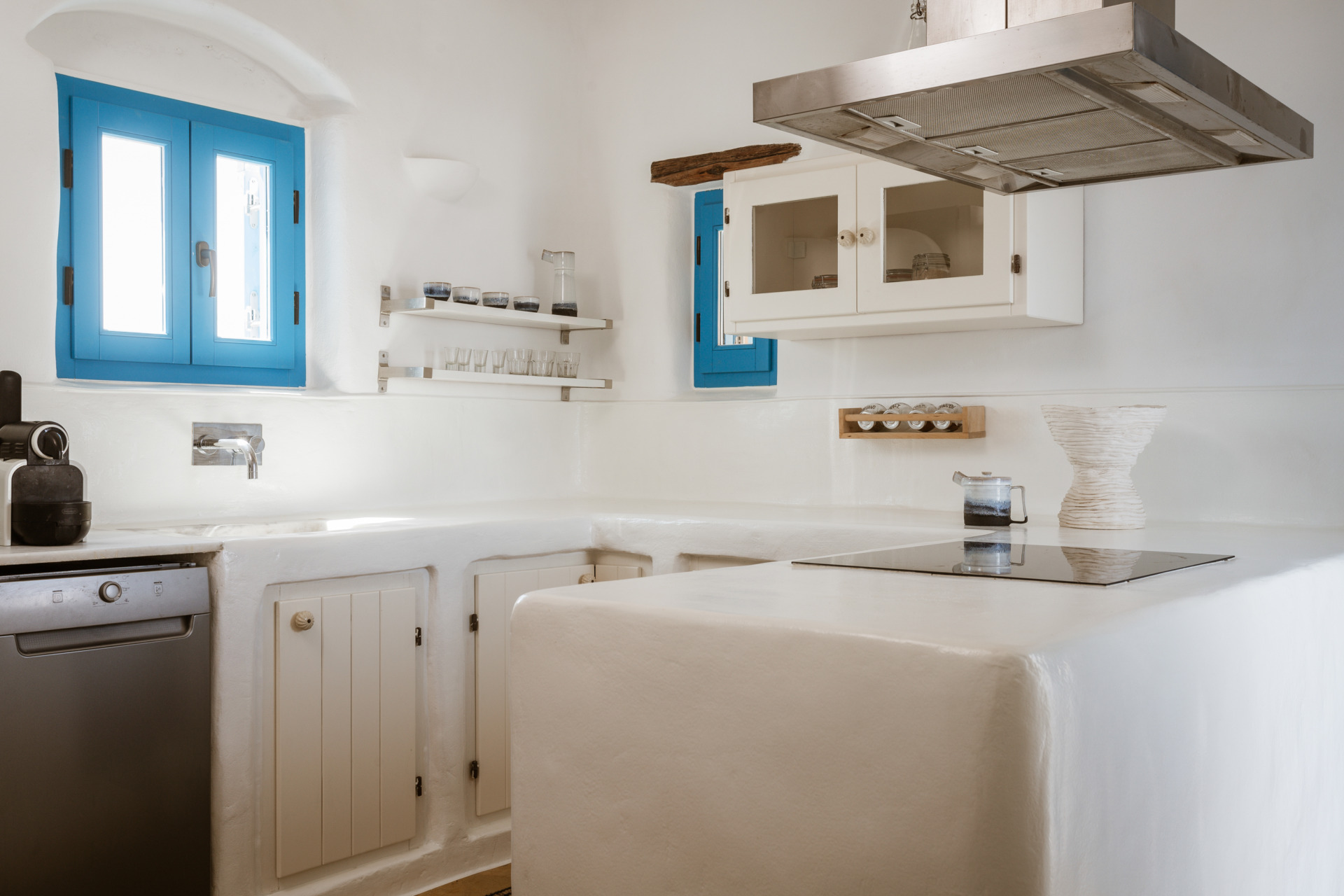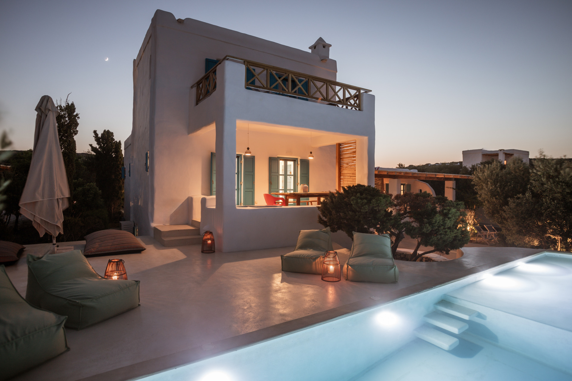 Nestled within a 8000 sq.m estate, Cottage Asterope is the perfect sanctuary for up to 10 guests, blending a spacious Main House and a cozy Guest House to ensure privacy and comfort. This retreat is designed with five double bedrooms across three levels, promoting snug relaxation with its tranquil terraces and lush garden plunge pool area. The Main House features a welcoming bedroom with twin beds, a separate bathroom, and a fully equipped kitchen leading into the living and dining spaces. These areas extend to a covered terrace, inviting guests to an outdoor dining area beside the plunge pool, as well as a BBQ dining area nestled in the garden. The Guest House is a space of comfy privacy, with a living room facing towards Pori bay and Amorgos, a sofa bed, a kitchenette, and access to a secluded outdoor dining terrace. A private double bedroom with an ensuite bathroom on the lower level enhances the sense of retreat. Asterope’s outdoor area, centered around a private plunge pool and surrounded by dining and lounge spots, is perfect for soaking in the Aegean sun or enjoying delightful meals under the stars.